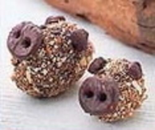 ブタさんのチョコレート・ケーキ (中はスポンジケーキ、鼻はクッキー生地) 欧州でもブタさんは、幸せの象徴とか。 (多産→旨くて豊かな食生活) 街の市場などでも、豚をかたどった藁人形などを売ってますね。 松屋のは、その名も「幸せのブタ」のケーキ屋…
